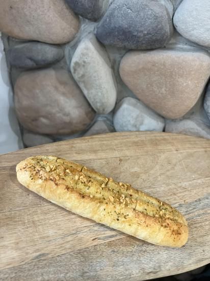 仕上げにクラッシュガーリックを贅沢にトッピングして、パン全体からガーリックの香りがあふれます。